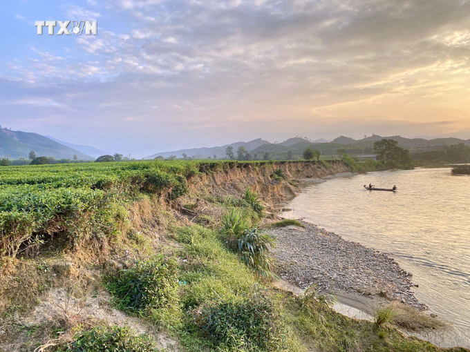 Cũng gặp tình trạng tương tự, hộ anh Nguyễn Văn Toàn (thôn Tiền Phong) cũng chịu ảnh hưởng nặng nề. Anh Toàn chia sẻ, cứ vào mùa mưa, nước sông lên cao, chảy xiết gây sạt lở, cuốn trôi nhiều diện tích trồng chè của người dân. Mấy năm gần đây, tình trạng sạt lở diễn biến phức tạp hơn, nếu không có phương án gia cố bờ sông thì nguy cơ người dân không còn đất canh tác.