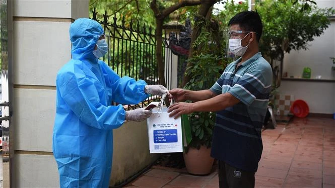 Ca F0 tại xã Cao Xá, huyện Lâm Thao, tỉnh Phú Thọ được phát thuốc điều trị tại nhà. Ảnh: Diệp Trươg - TTXVN