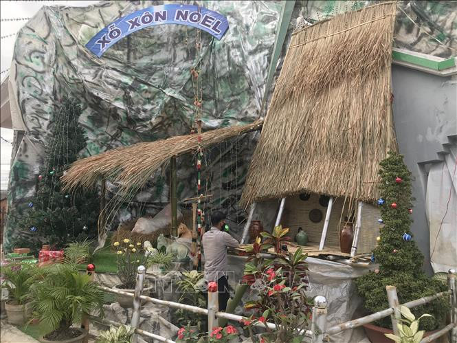 Trong khi đó, ngôi làng Kon K’tu (xã Đăk Rơ Wa, thành phố Kon Tum) của đồng bào Bahnar cũng tràn ngập không khí chào đón Giáng sinh và năm mới đang đến rất gần.