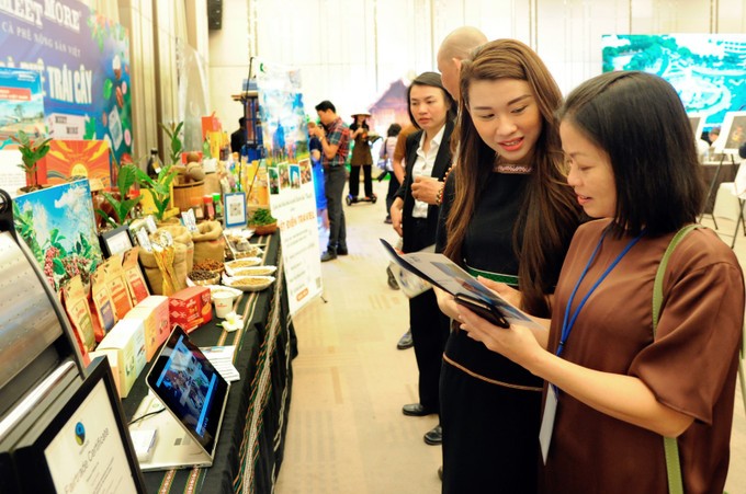 Khách tham quan, tìm hiểu về các sản phẩm cà phê của tỉnh Đắk Lắk. Ảnh: An Hiếu