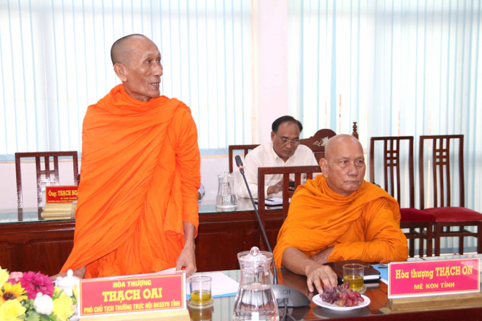 Hòa thượng Thạch Oai, Phó Chủ tịch Hội Đoàn kết sư sãi yêu nước tỉnh Trà Vinh bày tỏ, trên địa bàn tỉnh có hơn 300.000 người dân tộc Khmer và hầu hết theo đạo Phật giáo Nam tông Khmer. Hòa thượng mong muốn Uỷ ban MTTQ và các ngành chức năng của tỉnh thông tin kịp thời các chủ trương, chính sách mới của Đảng và Nhà nước; những Nghị quyết về phát triển kinh tế - xã hội địa phương đến Hội Đoàn kết sư sãi yêu nước tỉnh để Hội tuyên truyền, phổ biến giúp phật tử, đồng bào Khmer hiểu rõ, chấp hành đúng chủ trương, chính sách, pháp luật của Đảng và Nhà nước, góp phần tăng cường khối đại đoàn kết dân tộc, đoàn kết tôn giáo, giữ vững an ninh chính trị, trật tự an toàn xã hội.