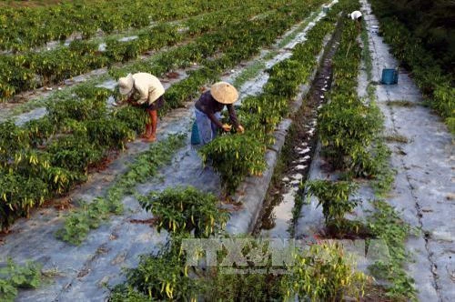 | Trồng ớt sừng vàng cho thu nhập 150 triệu - 200 triệu đồng/ha/vụ ở Hậu Giang. Ảnh: Duy Khương - TTXVN |