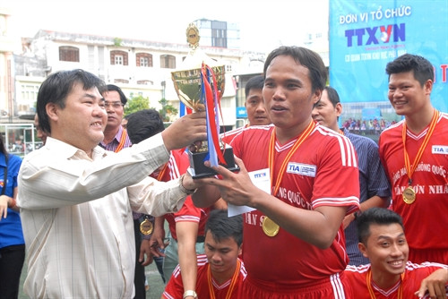 Ông Nguyễn Quốc Tuấn, Phó Giám đốc Cơ quan TTXVN khu vực phía Nam trao cúp vô địch cho đội Cảng Hàng không Quốc tế Tân Sơn Nhất