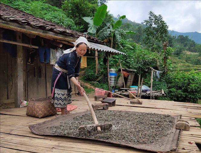 Người dân Hoài Khao có cuộc sống gần gũi thiên nhiên và được thiên nhiên ban tặng nhiều món quà quý giá. Chè dây là một trong những món quà quý đó. Chè dây được hái từ rừng, phơi khô, pha nước uống rất có lợi cho sức khỏe, đặc biệt là những người bị bệnh dạ dày. Ảnh: Quốc Đạt - TTXVN