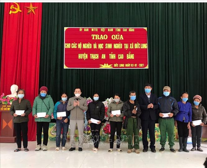 Ủy ban Mặt trận Tổ quốc Việt Nam các cấp trong tỉnh Cao Bằng đã tặng 5.130 suất quà tổng trị giá trên 2,4 tỷ đồng. Trong đó, Quỹ “Vì người nghèo" tỉnh Cao Bằng tặng 4.400 suất, trị giá 2,2 tỷ đồng; Quỹ "Vì người nghèo" các huyện, thành phố tặng 730 suất, trị giá gần 300 triệu đồng.
