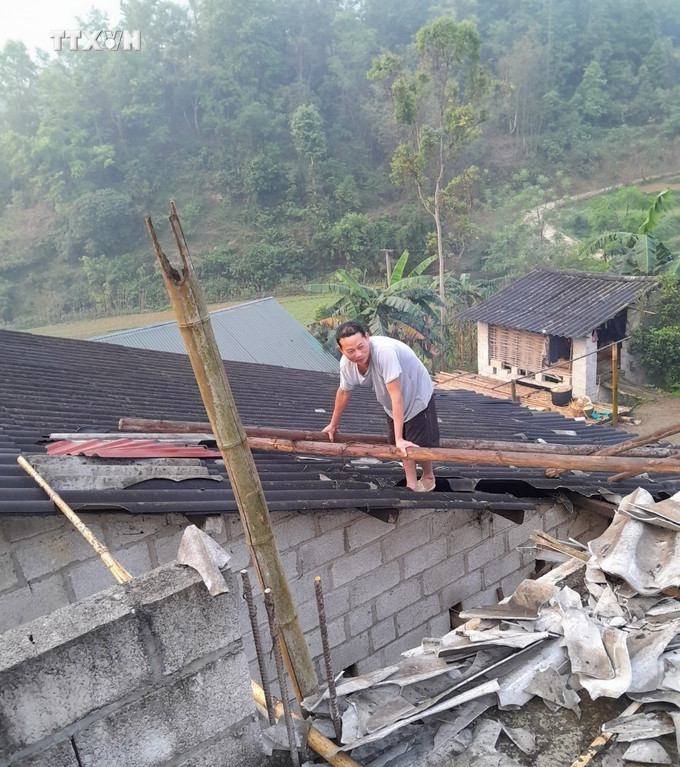 Ngày 2/4, dông, lốc kèm mưa đá xảy ra trên địa bàn 6 huyện của tỉnh Cao Bằng, gây tốc mái trên 570 nhà ở của người dân.