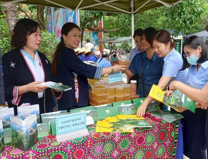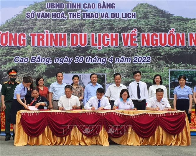 Ký kết hợp tác phát triển du lịch giữa Ban quản lý các khu di tích quốc gia đặc biệt Cao Bằng với các Công ty du lịch tại Lễ hội du lịch về nguồn 2022. Ảnh: TTXVN phát