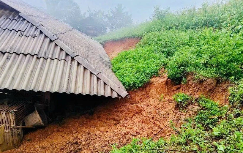 Một nhà dân ở xã Phan Thanh, huyện Bảo Lạc bị đất đá lở tràn vào nhà. Ảnh: TTXVN