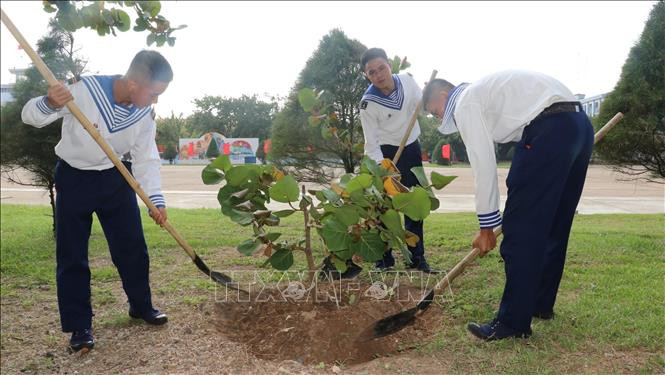 Chiến sỹ trồng cây bang vuông trên đảo. Ảnh: Sỹ Tuyên – TTXVN