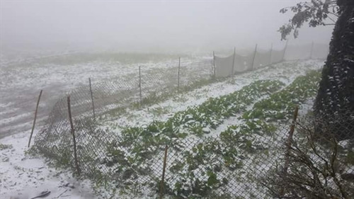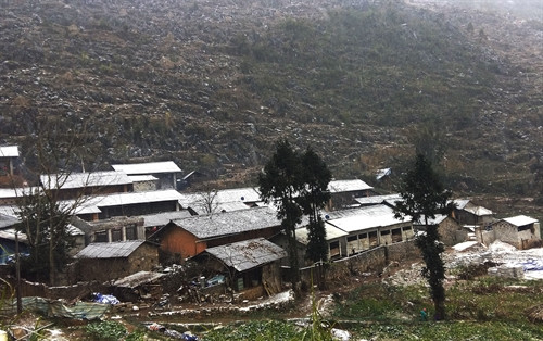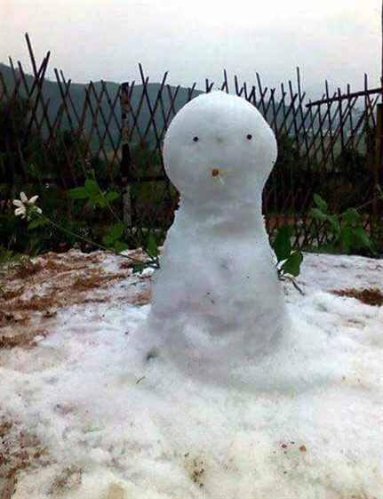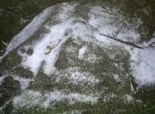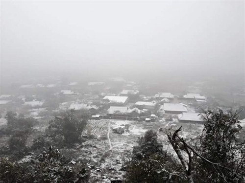 Rạng sáng 24/1/2016, tại địa bàn hai xã Hang Kia, Pà Cò của huyện Mai Châu (Hoà Bình) đã có tuyết rơi. Theo thông tin từ người dân xã Hang Kia và Pà Cò tuyết bắt đầu rơi từ lúc 1 giờ ngày 24/1 và đến 10 giờ cùng ngày, toàn bộ hai xã đều có tuyết rơi dày, nhiệt độ xuống 2 độ C và có mưa.. Ảnh: Vũ Hà- TTXVN
