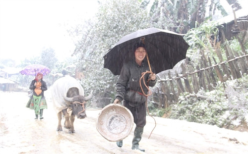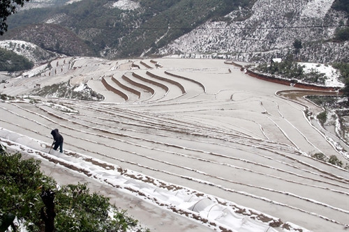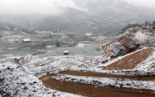Do ảnh hưởng của không khí lạnh tràn về với cường độ mạnh, ngày 24/1, ở tỉnh Yên Bái nhiệt độ đã xuống dưới 6 độ C, ở khu vực vùng núi cao huyện Trạm Tấu và Mù Cang Chải có nơi xuống 1 đến 3 độ C. Tuyết đã rơi nhiều tại khu vực xã Bản Mù ở huyện Trạm Tấu. Ảnh: Thế Duyệt, Anh Tuấn- TTXVN
