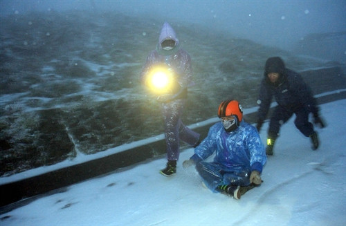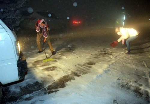 Tuyết rơi ở Bình Liêu (Quảng Ninh) đêm 23 và sáng 24/1/2016. Ảnh: Nguyễn Hoàng- TTXVN