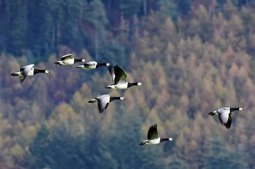 | Những chú ngỗng Barnacle bay trên bầu trời Solway, Scotland. Hàng nghìn chú ngỗng Barnacle sẽ trở lại Solway mỗi mùa thu từ nơi làm tổ ở Svalbard |