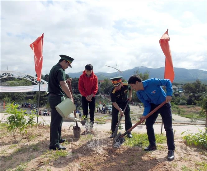 Các đại biểu trồng cây tại lễ ra quân Chiến dịch Thanh niên Tình nguyện hè 2020. Ảnh: Cao Nguyên-TTXVN