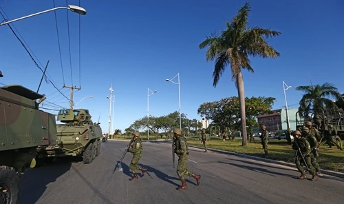 Quân đội được điều động tới để thắt chặt an ninh tại Victoria, thủ phủ bang Espirito Santo ngày 9/2. THX/TTXVN