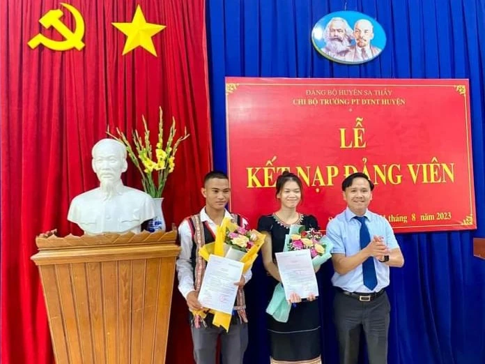 Kết nạp đảng viên là học sinh người DTTS tại Trường PT DTNT huyện Sa Thầy. Ảnh: tuyengiaokontum.org.vn