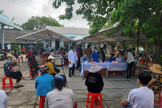 Tổ chức tiêm vắc-xin phòng COVID-19 cho người dân vùng biển thị trấn Sông Đốc, huyện Trần Văn Thời (Cà Mau). Ảnh: Kim Há