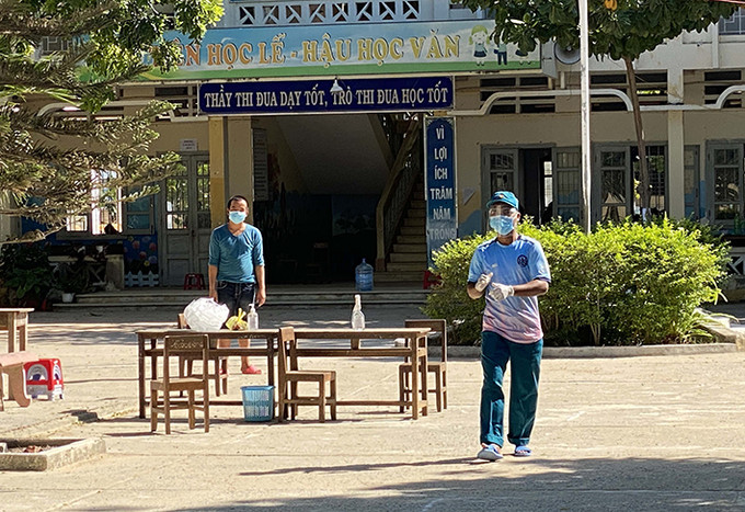 Cơ sở 2 Trường tiểu học và trung học cơ sở Nguyễn Bỉnh Khiêm ở xã Phước Nam, huyện Thuận Nam (Ninh Thuận) là nơi cách ly tập trung của những người về từ vùng dịch. Ảnh: Công Thử