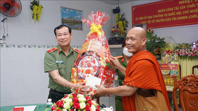 Đoàn công tác Đoàn công tác Ủy ban Quốc phòng và An ninh của Quốc hội thăm, chúc Tết Chol Chnam Thmay tại Cà Mau. Ảnh: Kim Há - TTXVN