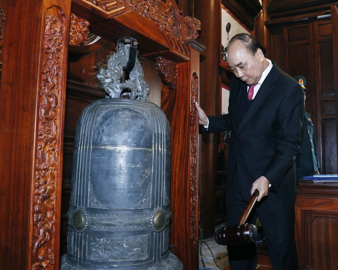 Chủ tịch nước Nguyễn Xuân Phúc thỉnh chuông. Ảnh: Thống Nhất – TTXVN