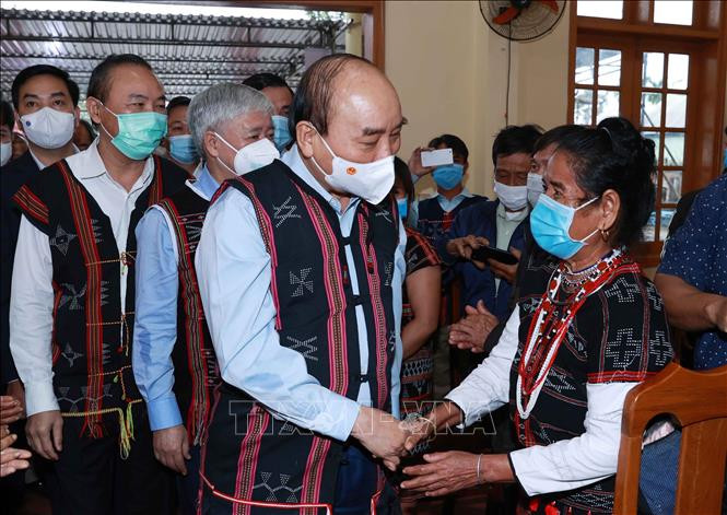 Nhân kỷ niệm 91 năm Ngày truyền thống Mặt trận Tổ quốc Việt Nam (18/11/1930-18/11/2021), sáng15/11, Chủ tịch nước Nguyễn Xuân Phúc đã tới chung vui cùng bà con đồng bào các dân tộc xã Ba, huyện Đông Giang trong “Ngày hội Đại đoàn kết toàn dân tộc” năm 2021.