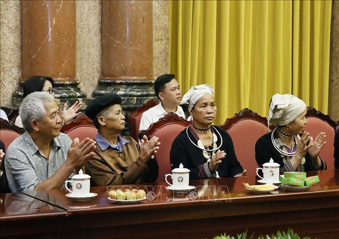 Chủ tịch nước Nguyễn Xuân Phúc tiếp đoàn đại biểu người có uy tín trong đồng bào dân tộc thiểu số tỉnh Tuyên Quang. Ảnh: Thống Nhất – TTXVN