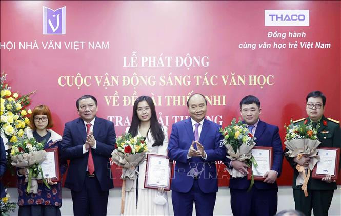 Phát biểu tại Lễ phát động, Chủ tịch nước Nguyễn Xuân Phúc nhấn mạnh vị thế và vai trò của nhà văn và các tác phẩm còn ý nghĩa rất lớn trong cuộc sống, sự nghiệp xây dựng và bảo vệ Tổ quốc, đặc biệt là những tác phẩm văn học có giá trị, có sức lan tỏa và trường tồn với thời gian. Chủ tịch nước đánh giá cao Hội Nhà văn Việt Nam đã tổ chức Lễ phát động cuộc vận động sáng tác văn học về đề tài thiếu nhi, trao giải thưởng Tác giả trẻ lần thứ nhất; hoan nghênh và ủng hộ chiến lược của Hội Nhà văn Việt Nam nhằm tạo ra những tác phẩm văn chương xuất sắc cho trẻ em cũng như mang những tác phẩm văn chương ấy đến với trẻ em, đặc biệt là trẻ em miền núi và vùng sâu vùng xa.