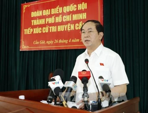 | Chủ tịch nước Trần Đại Quang tiếp xúc cử tri huyện Cần Giờ. Ảnh: Nhan Sáng - TTXVN. |