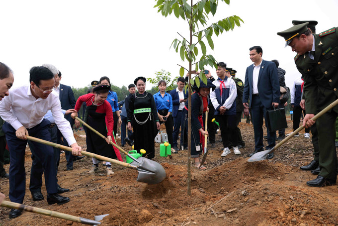 Chủ tịch nước bày tỏ vui mừng khi được biết năm 2023 vừa qua, mặc dù còn nhiều khó khăn, thách thức, nhưng với sự cố gắng của các địa phương, thực hiện chương trình "Trồng một tỷ cây xanh" đến năm 2025, cả nước đã trồng được 260.000 ha rừng trồng tập trung và 127 triệu cây xanh phân tán, góp phần cung cấp nguyên liệu ổn định cho công nghiệp chế biến, xuất khẩu; tỷ lệ che phủ rừng được duy trì trên 42%. Công tác bảo vệ rừng có chuyển biến tích cực. Lần đầu tiên nước ta chuyển nhượng thành công lượng giảm phát thải 10,3 triệu tấn các bon, trị giá gần 1.200 tỷ đồng.