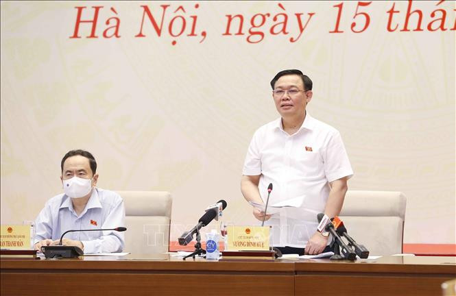 Chủ tịch Quốc hội Vương Đình Huệ cùng các đại biểu. Ảnh: Doãn Tấn – TTXVN