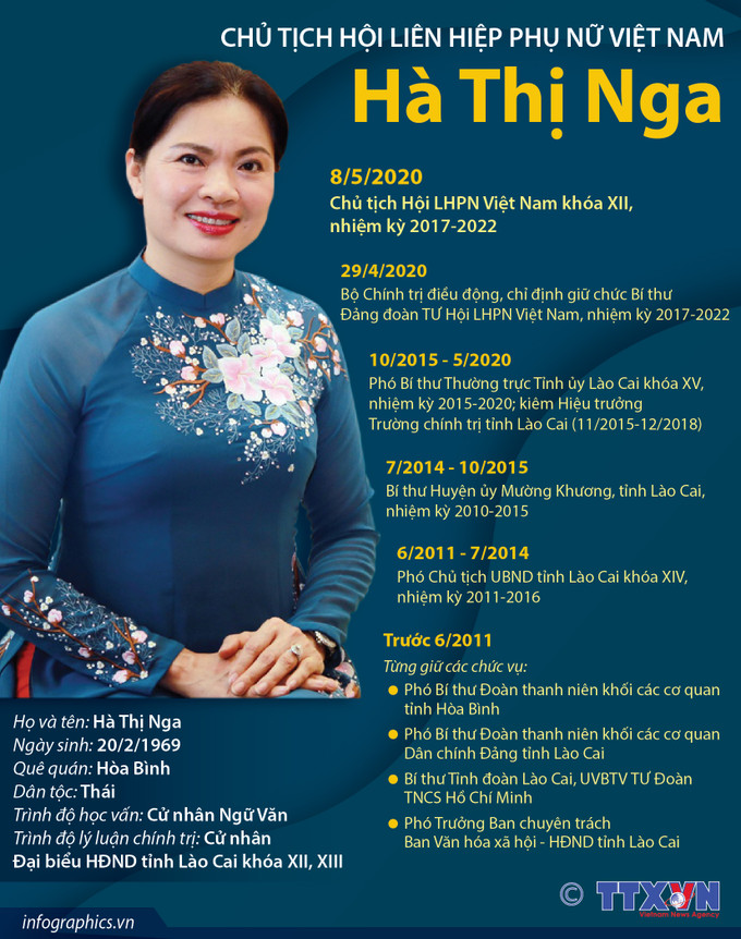 Đại hội đại biểu phụ nữ toàn quốc lần thứ VIII dự kiến sẽ diễn ra vào đầu tháng 3/2022. Trước sự kiện quan trọng này, Ủy viên Trung ương Đảng, Chủ tịch Trung ương Hội Liên hiệp phụ nữ Việt Nam Hà Thị Nga đã trả lời phỏng vấn của phóng viên Thông Tấn Xã Việt Nam (TTXVN) về công tác chuẩn bị, cũng như kết quả tổ chức đại hội phụ nữ ở các địa phương.