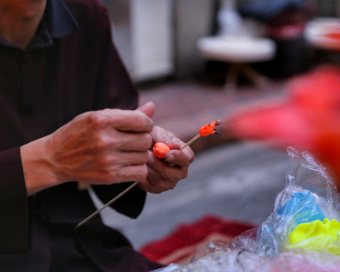 Nghệ nhân làm tò he hình hoa gạo. Ảnh: Tuấn Đức – TTXVN