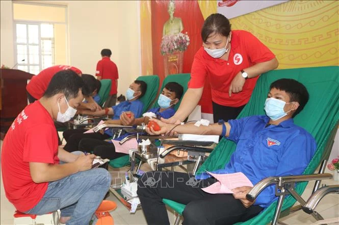 Lực lượng đoàn viên thanh niên tham gia hiến máu tính nguyện. Ảnh: Chu Hiệu - TTXVN