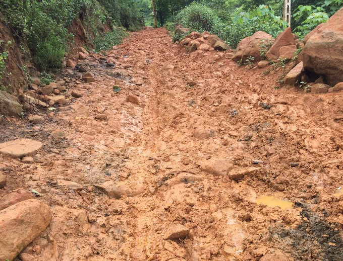 Đường vào điểm trường Bãi Chè Cao của trường Mầm non Hồng Ngọc đi lại vô cùng khó khăn khi trời mưa. Ảnh: Việt Dũng - TTXVN