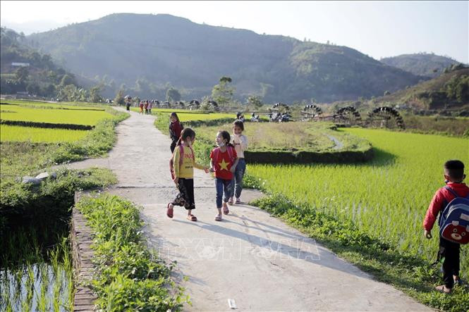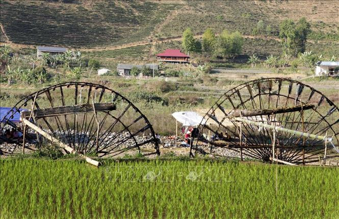 Ngoài việc cung cấp nước cho sản xuất nông nghiệp, ngày nay, những chiếc cọn nước đã trở thành nét đặc trưng riêng của bản Nà Khương nói riêng và của xã Bản Bo nói chung và nơi đây cũng là điểm du lịch hấp dẫn cho du khách khi đến với Tây Bắc. Ảnh: Quý Trung - TTXVN