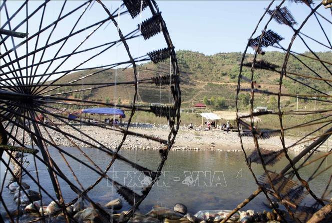 Cọn nước được làm từ những nguyên vật liệu thô sơ có trong tự nhiên như; tranh tre, nứa, gỗ, mây, vầu,.. kết tinh bởi những bàn tay khéo léo của người dân tộc Thái bản Nà Khương. Ảnh: Quý Trung – TTXVN