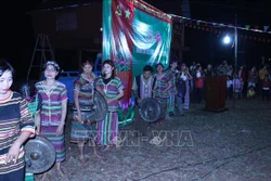 Màn biểu diễn cồng chiêng trong lễ hội mừng lúa mới của đồng bào S’tiêng ở Bình Phước. Ảnh: K 'GỬIH-TTXVN