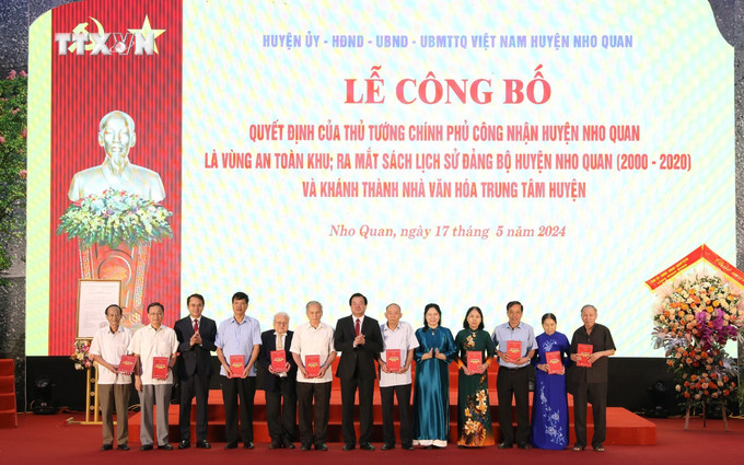 Ngày 17/5, Huyện ủy, HĐND, UBND, Ủy ban MTTQ Việt Nam huyện Nho Quan (tỉnh Ninh Bình) tổ chức Lễ công bố Quyết định của Thủ tướng Chính phủ công nhận vùng An toàn khu, ra mắt sách Lịch sử Đảng bộ huyện (2000 - 2020) và khánh thành Nhà văn hóa Trung tâm huyện.