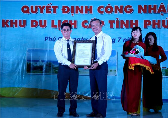 Trao Quyết định công nhận Phú Quý là khu du lịch cấp tỉnh của Bình Thuận. Ảnh: Nguyễn Thanh - TTXVN