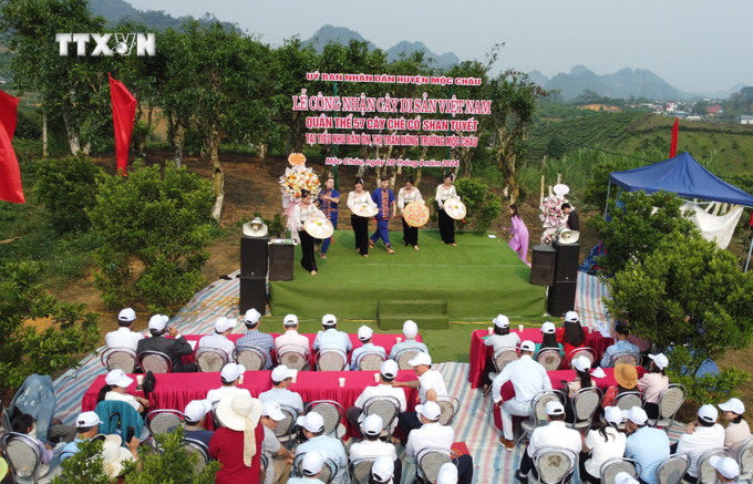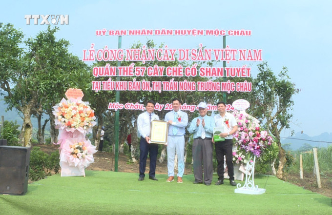 Ngày 20/4, UBND huyện Mộc Châu, tỉnh Sơn La phối hợp với Hội Bảo vệ thiên nhiên và Môi trường Việt Nam tổ chức Lễ công nhận cây di sản Việt Nam đối với quần thể 57 cây chè cổ Shan tuyết ở tiểu khu bản Ôn, thị trấn Nông trường Mộc Châu (huyện Mộc Châu).