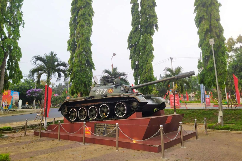 Xe tăng T59, số hiệu 377 trưng bày tại di tích chiến thắng Đăk Tô - Tân Cảnh. Ảnh: baokontum.com.vn