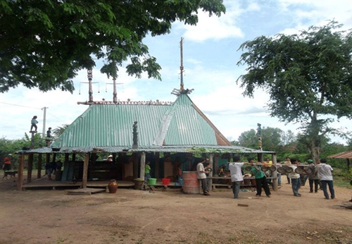 Phần trên cùng được ngăn cách bởi một thanh gỗ mà ở hai đầu thanh gỗ có xu hướng cong xuống, thanh gỗ này được giải thích như một cánh tay của thần (T’ngan Yang), phần trên cùng được trang trí một vài đường nét hoa văn nhỏ cùng với hình một mặt trăng khuyết đôi khi là hình mặt trời, phần trên cùng này hầu như hình tượng mặt trăng hoặc mặt trời là không thể thiếu.