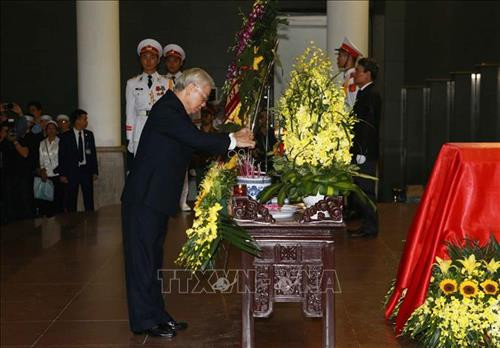 | Đoàn đại biểu Quốc hội nước CHXHCN Việt Nam do Chủ tịch Quốc hội Nguyễn Thị Kim Ngân dẫn đầu viếng đồng chí Trung tướng Đồng Sỹ Nguyên. Ảnh: Doãn Tấn – TTXVN |