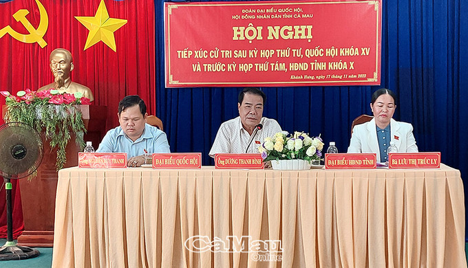 Ngày 17/11, Đoàn đại biểu Quốc hội tỉnh Cà Mau, Hội đồng nhân dân tỉnh đã tổ chức các buổi tiếp xúc cử tri sau Kỳ họp thứ 4, Quốc hội khóa XV và trước Kỳ họp thứ 8, Hội đồng nhân dân tỉnh khóa X tại các xã Khánh Hưng, huyện Trần Văn Thời và xã Hàm Rồng, huyện Năm Căn.