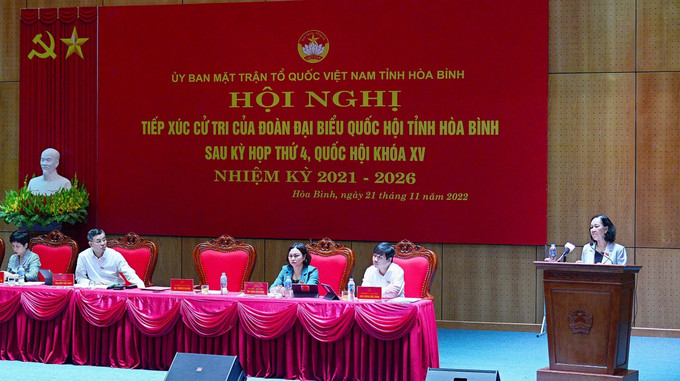 Tại buổi tiếp xúc, cử tri thành phố Hòa Bình bày tỏ sự tin tưởng vào hoạt động của Quốc hội và Đoàn đại biểu Quốc hội tỉnh. Các cử tri có nhiều kiến nghị, tập trung một số nội dung: quan tâm đảm bảo chế độ chính sách cho cán bộ tại các xã, phường trên địa bàn thành phố; chính sách người có công với cách mạng, chất độc da cam; những khó khăn trong công tác tuyên truyền, áp dụng các nội dung Luật Đất đai tại địa phương; cần xem xét cụ thể các điều khoản của Luật, sửa đổi các nội dung không còn phù hợp; đồng thời việc sửa đổi phải đảm bảo không làm ảnh hưởng đến các dự án đã và đang triển khai. Cử tri đề nghị Trung ương xem xét hỗ trợ kinh phí cho một số dự án như: kè chống sạt lở trên địa bàn xã Trung Minh, thành phố Hòa Bình; hỗ trợ nguồn lực để triển khai xây dựng Khu du lịch Quốc gia Hồ Hòa Bình…
