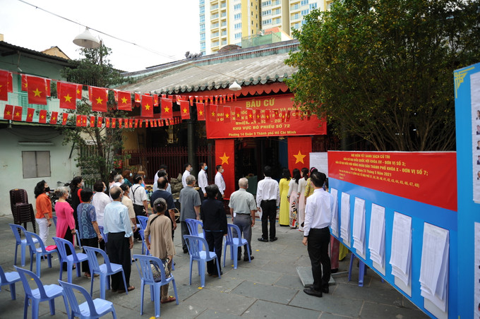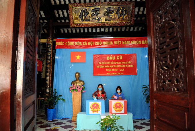 Không khí bầu cử diễn ra trang nghiêm tại khu vực bỏ phiếu số 73 - Đền thờ họ Trương ở phường 14, quận 5, Thành phố Hồ Chí Minh.
