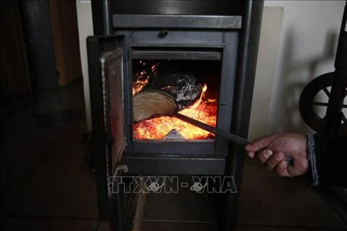 | Đốt lò sưởi bằng củi để sưởi tại một hộ gia đình ở Temuco, Chile ngày 22/6. Ảnh: AFP/TTXVN |