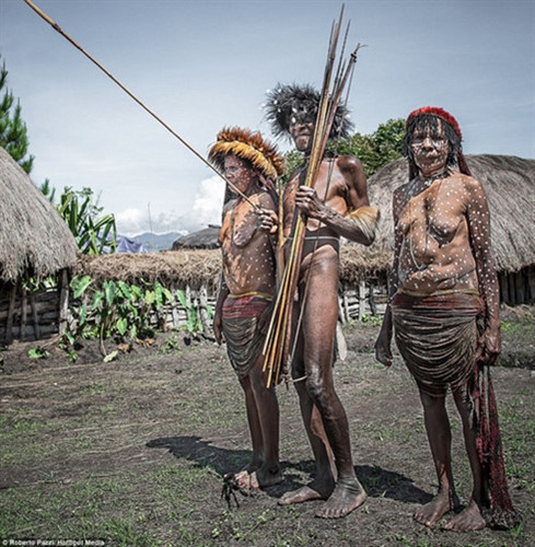 Nhiếp ảnh gia Roberto Pazzi đã gặp bộ tộc Dani sống trong các túp lều tre, săn thú bằng giáo và hiến sinh lợn trong lễ cưới.