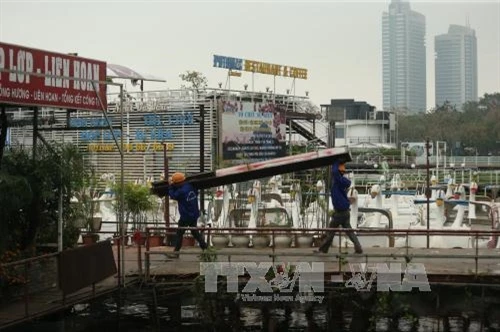 Trao đổi với phóng viên TTXVN vào đầu giờ chiều 23/2, bà Võ Bích Thủy - Chánh Văn phòng UBND quận Tây Hồ cho biết, hiện lực lượng chức năng tiếp tục phá dỡ những công trình vi phạm trật tự xây dựng như: cầu tầu, đường dẫn, mái che, cọc tiêu. Dự kiến đến hết ngày 24/2 sẽ phá dỡ xong những vi phạm trật tự xây dựng thuộc 4 nhà nổi trong diện phải giải tỏa. Quận Tây Hồ cũng đang chỉ đạo các đoàn thể địa phương tiếp tục tuyên truyền, vận động các doanh nghiệp, cá nhân tự tháo dỡ công trình vi phạm, chấm dứt toàn bộ hoạt động sai phép trên Hồ Tây; di dời các du thuyền, nhà nổi về khu tập kết tại Đầm Bẩy. Sau khi hoàn thành phá dỡ phần vi phạm trật tự xây dựng, quận Tây Hồ sẽ bàn biện pháp đưa nhà nổi về khu vực Đầm Bẩy.