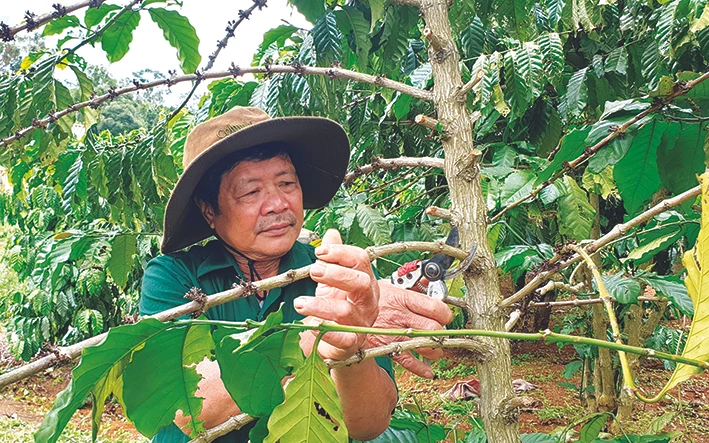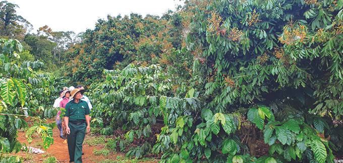 Mô hình VAC của ông Xây được xây dựng từ ý tưởng liên kết, hỗ trợ tạo vòng khép kín trong sản xuất. Hiện gia đình ông Xây có 4.000 m2 ao, vừa để lấy nước tưới cho 10 ha cây cà phê xen canh mắc ca, vừa để chăn nuôi, thả cá. Gia đình ông Xây còn nuôi 10 con bò, 50 con lợn, trên 200 con ngan, gà, vịt. Không chỉ chăm lo cho gia đình, ông Xây còn giúp 20 hộ trong khu vực 800 bao phân chuồng, 500 cây cà phê, 100 con gà giống cùng nhiều giống cây ăn trái, đồng thời giải quyết việc làm thường xuyên cho 4 hội viên Hội Cựu chiến binh xã Đăk Rong, 50 nhân công thời vụ thu hái cà phê, mắc ca.